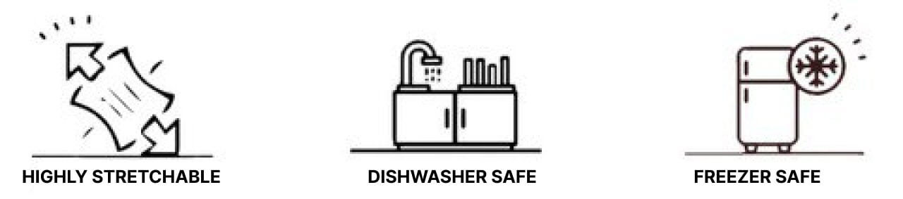 Reusable, dishwasher safe, and suitable for use in the fridge or freezer.