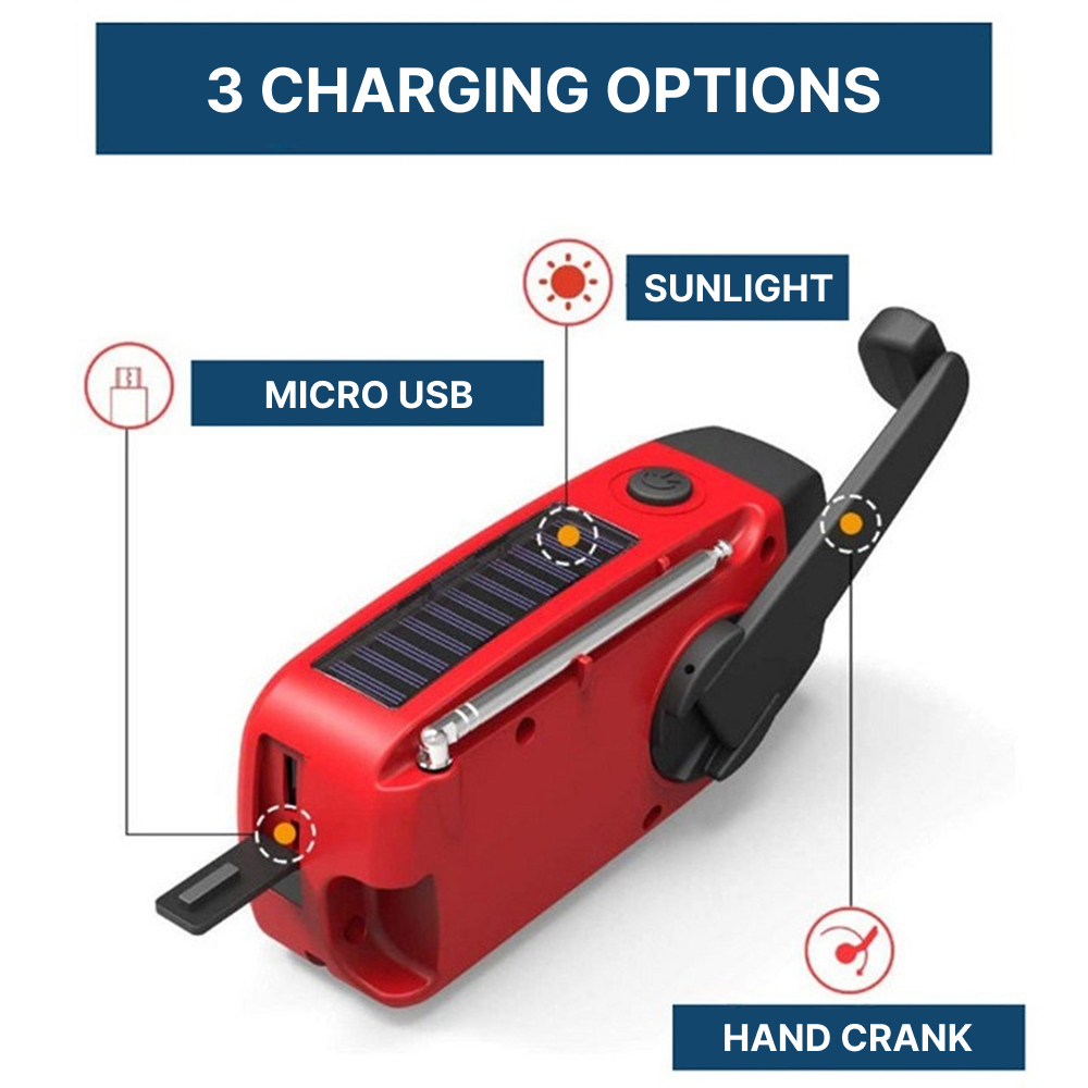Equip yourself now with the 4-in-1 Solar Hand-Crank Charger.