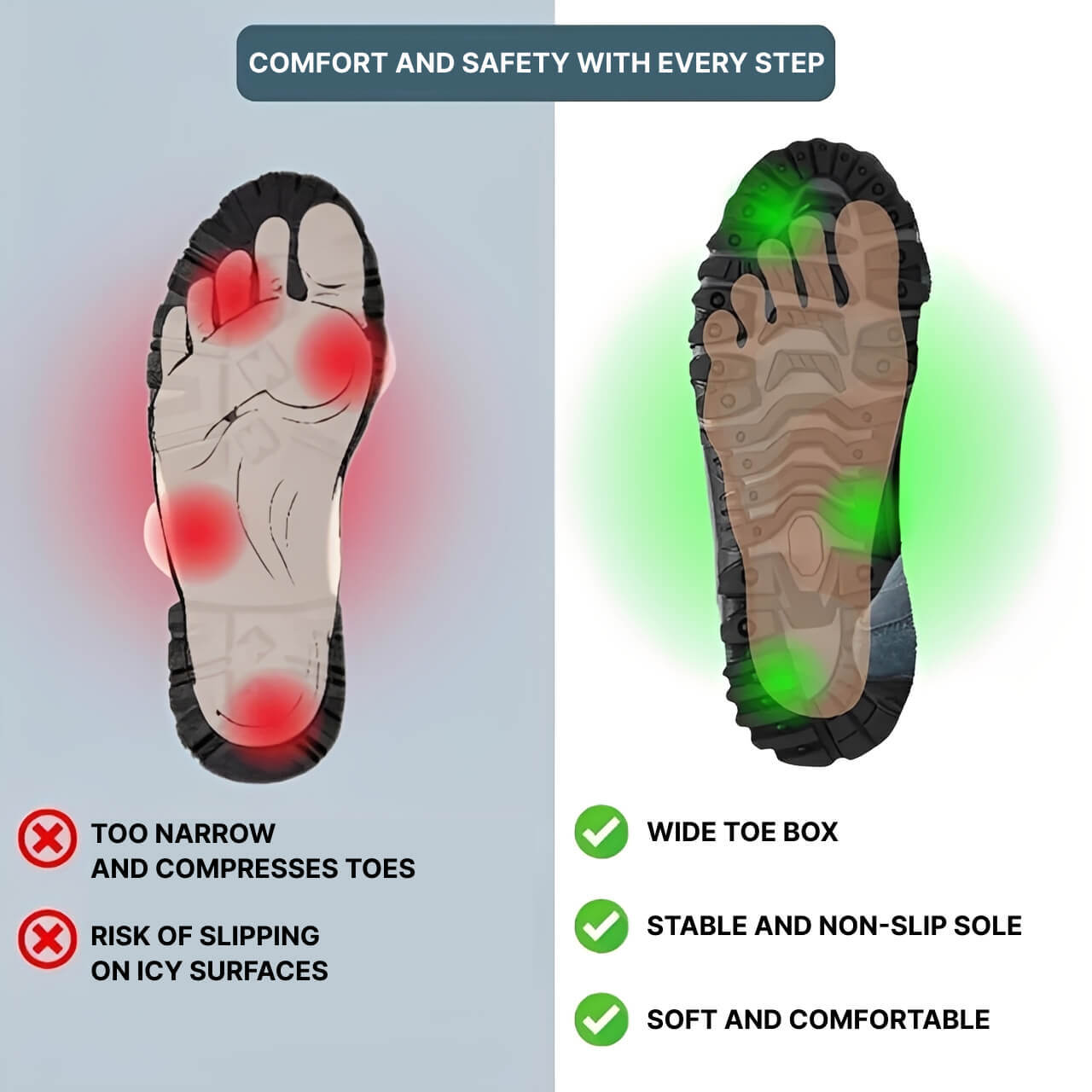 Walk more comfortably in winter with a greater feeling of stability.