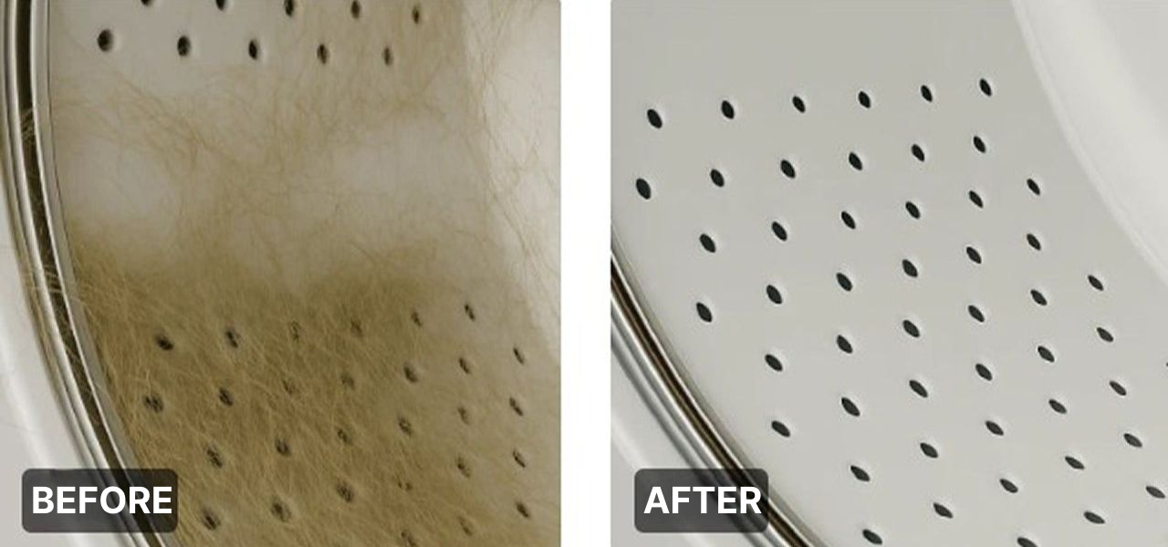 Designed for pet owners, it loosens and removes embedded pet hair from the drum and seals of your machine.