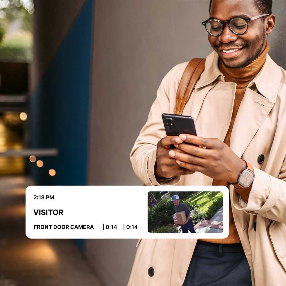 Get real-time notifications for detected events: familiar people, vehicles, packages, pets, fires, and more.
