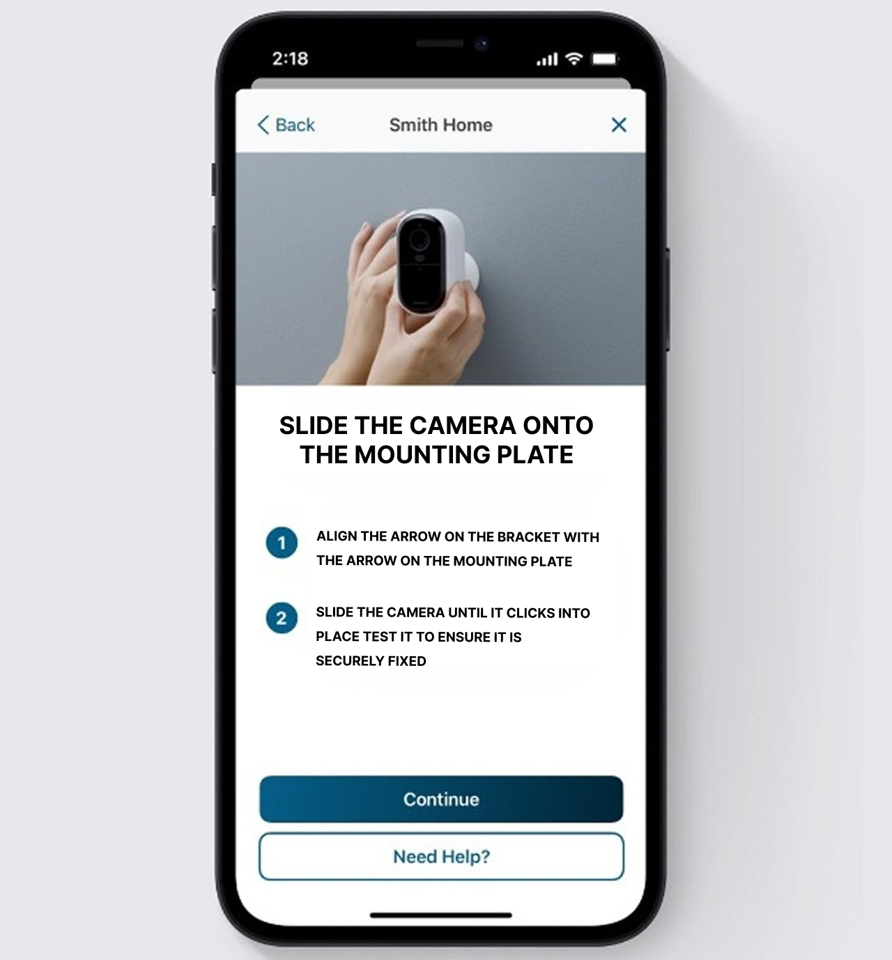 Mount the plate to the wall. Slide the camera on and lock it into place.