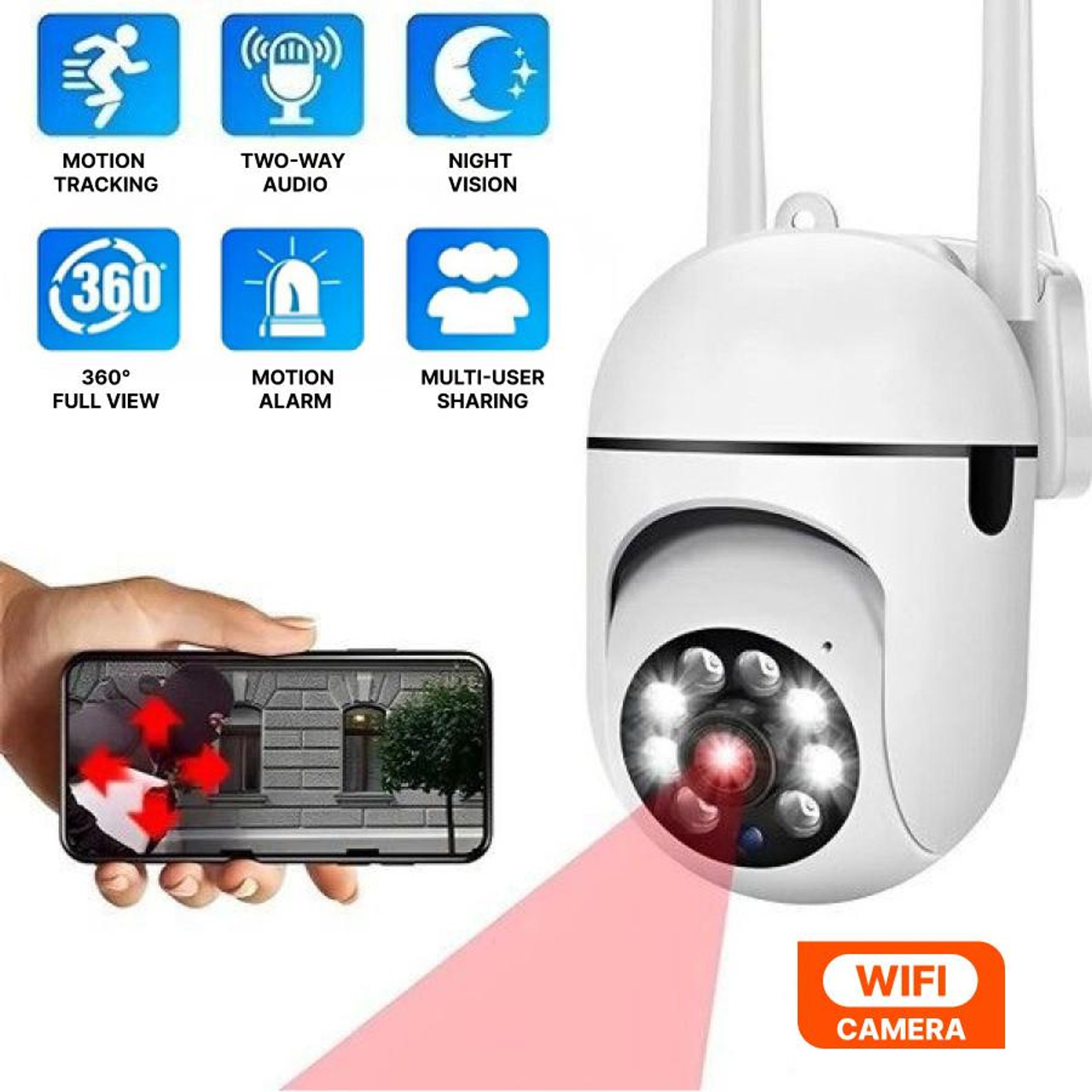 The Wireless Outdoor WiFi Surveillance Camera is the perfect solution for monitoring your home, office, shop, or any other space.